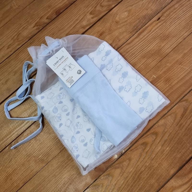 Комплект трикотажных мешочков из 3 штук для хранения белья малыша, цвет белый, голубой
