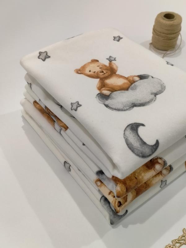 Пеленки непромокаемые хлопковые, в зависимости от размера можно использовать в коляске, люльке, пеленальном столике, кроватке и др. Одна сторона фланель хлопок, вторая сторона микрофибра, двухслойный трикотаж, внутри мембрана непромокаемая. Размер 53*56 цена 108 грн