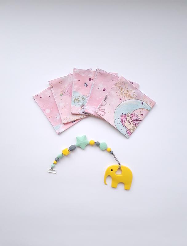 В наличии наборы хлопковых платочков. Хлопковые платочки - необходимая вещь для каждой мамы, они просто незаменимы по уходу за малышом и всегда должны быть под рукой: -когда малыш срыгнул; -когда прорезываются зубки; -на прогулке; -при кормлении. Ткань - польская бязь (хлопок 100%). -натуральные -дышащие, гипоалергенные -быстро сохнут -отлично впитывают влагу -не линяют -подходят для нежной кожи малыша с рождения. Размер платочка - 25×25 см +/-1 см НАБОР ИЗ 5 ПЛАТОЧКОВ - 60 ГРН . Прекрасный и недорогой вариант подарка!