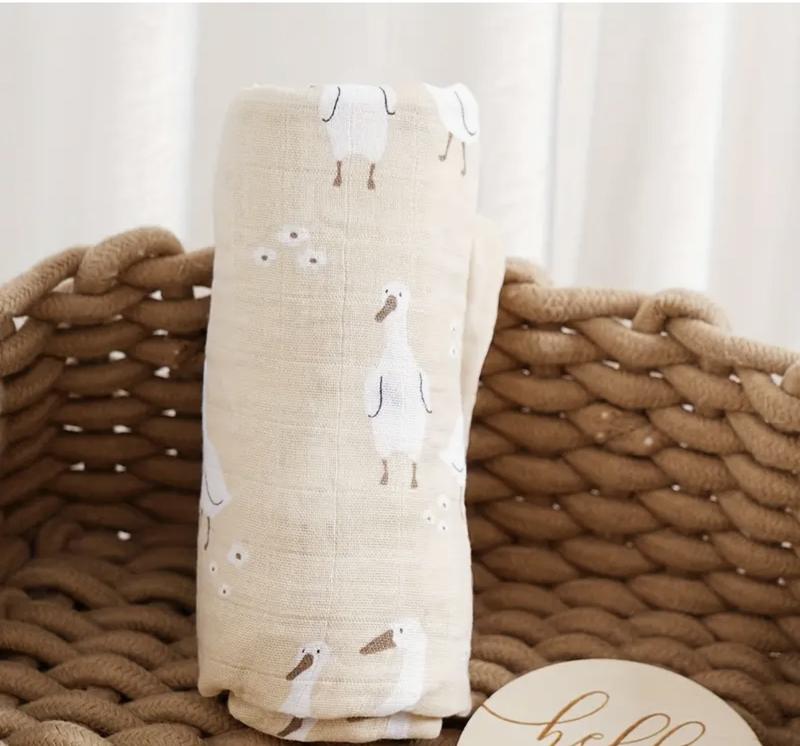 Пелюшка з принтом гуски, нова. Склад: 70% бамбук 30% котон Розмір: 110х120