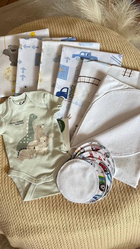 Набор в роддома для новорожденных (пеленки, непромокаемая пеленка, боди, многократные лакт...