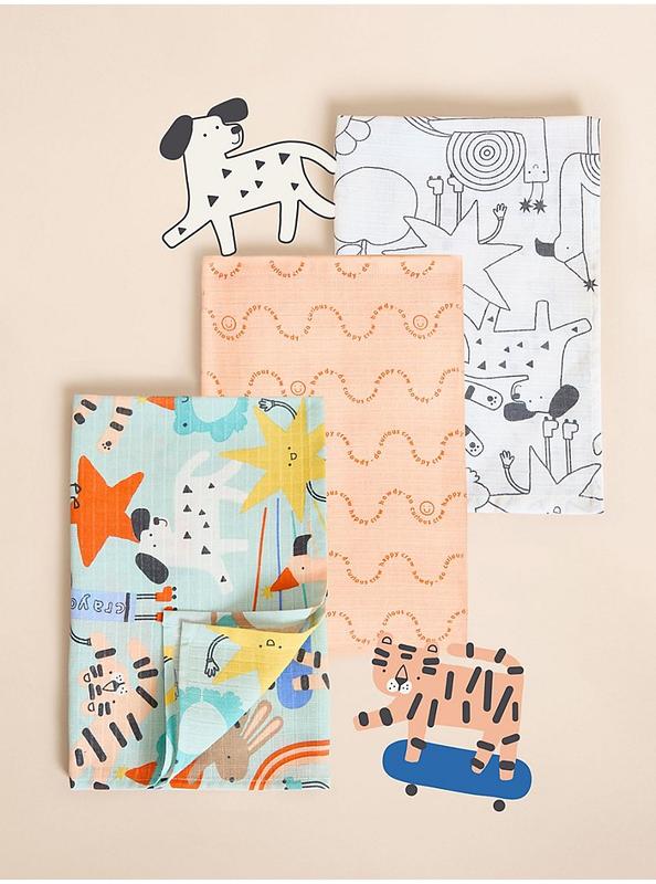 Набір яскравих муслінових пелюшок George (3 шт). Розмір 65 на 65 см.