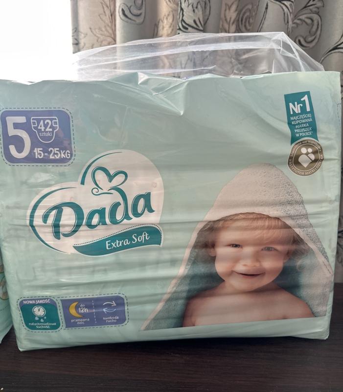 Підгузки Dada extra soft розмір 5 від 15 до 25 кг, в упаковці 42 штуки.