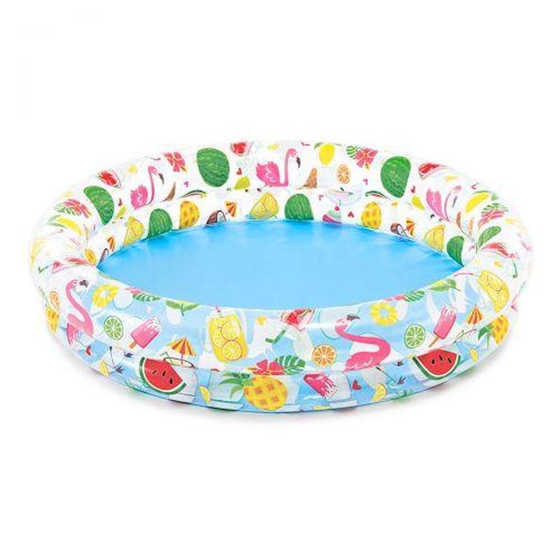 Надувной бассейн "Фрукты" имеет округлую форму с невысокими бортами. Специальная конструкция рассчитана так, что Ваш ребенок всегда может самостоятельно держаться за невысокие борта. Тем самым, риск падений или погружений под воду полностью исключен. Изготовлен из прочного винила. Размер: 122 x 25 см. Объём: 106 л (при 80% наполнении). Возраст: от 3 лет. _