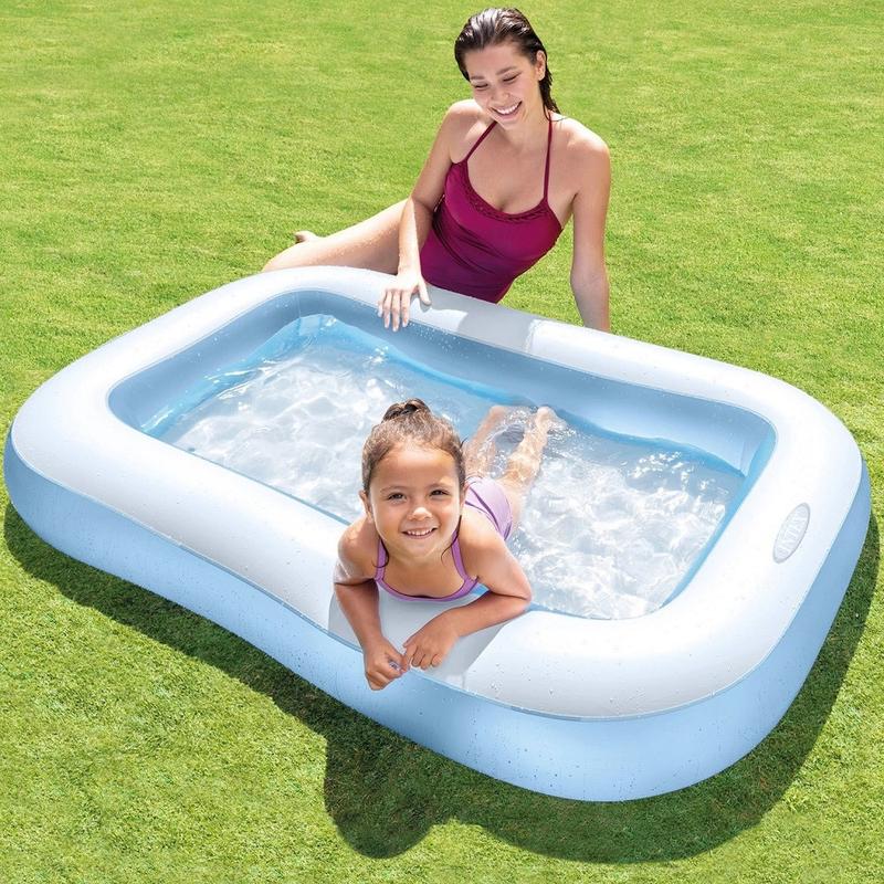 Детский надувной бассейн 57403 NP от известной торговой марки Intex - идеальный вариант для жарких летних деньков. Если у вас есть загородный дом - тогда эта надувная игрушка станет спасением от летнего зноя и веселой забавой для ваших малышей. Детский бассейн - это много часов веселых игр в воде. Прямоугольный бассейн имеет надувное дно, поэтому маленьким деткам будет комфортно и мягко в нем играть. Высота надувной стенки составляет всего 28 см, делая изделие безопасным для малышей. Объем вмещаемой воды составляет 90 литров, при заполнении на 80% - а этого более, чем достаточно для быстрого нагрева и веселой игры детишек от 2 лет. Несмотря на то, что бассейн детский, не стоит оставлять малыша одного без присмотра. Толщина материала стенки - 0,30 мм. Размер бассейна 166 * 100 * 28 см. Размер коробки 25 * 9 * 23 см.