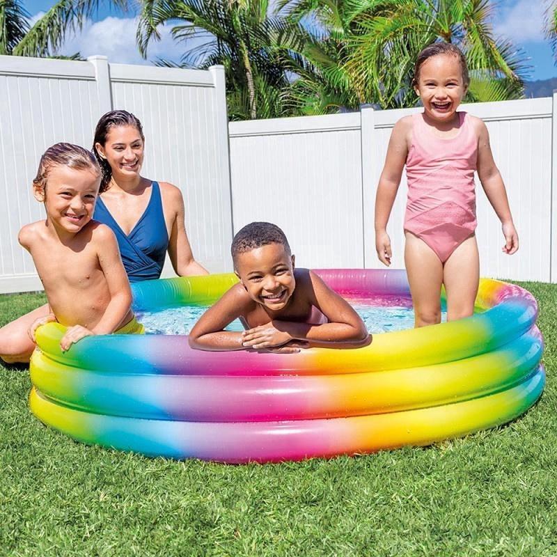 Дитячий надувний басейн Intex 58439 Барвистий надувний дитячий басейн Intex 58439 доставить Вашій дитині багато приємних хвилин у спекотливу, літню погоду. Басейн має надувні, м'які бортики, які не тільки додадуть комфорту, а й вбережуть дітей від травм. Зручна та легка конструкція, дає змогу взяти басейн із собою на відпочинок. Басейн надувний для діток від 1 до 6 років. Характеристики: Виробник: Intex Розміри: діаметр 147 см. Висота: 33 см. Об'єм: 335 л (за 80% наповнення) Товщина стінок: 0.32 мм Насос: купується окремо. Колір: різнобарвний. Матеріал: високоякісний вініл. Вага в упаковці: 1,8 кг. Переваги товару: - Швидко та легко встановлюється - Зручний і веселий - Високоякісний вініл