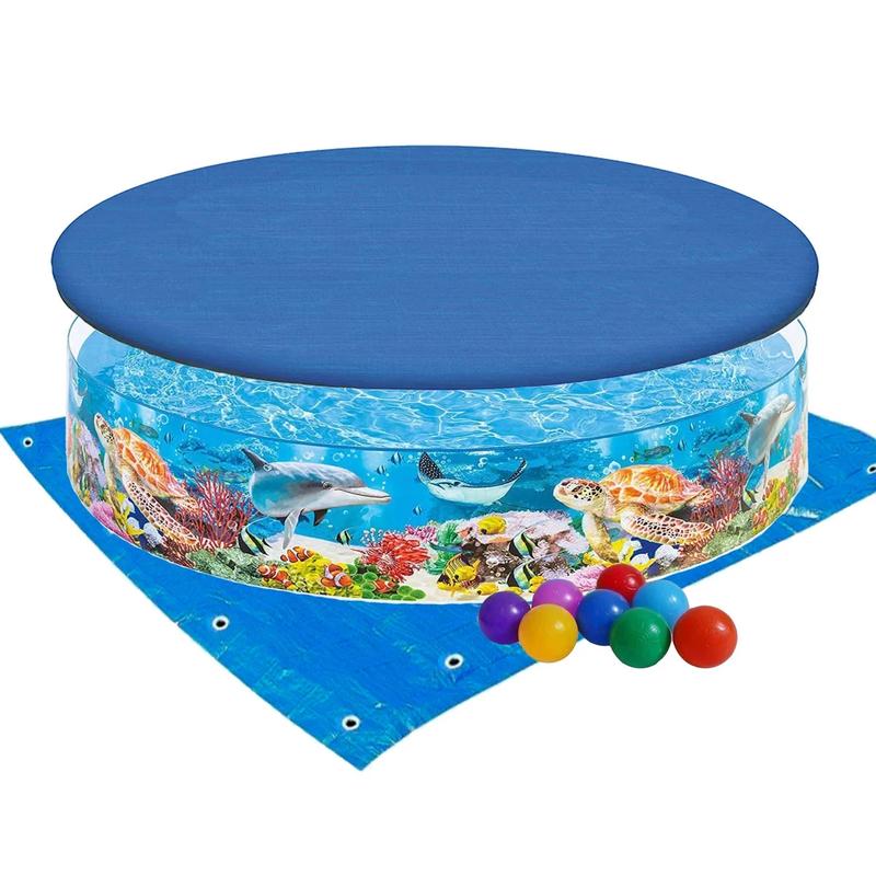 Технічні характеристики товару "Басейн дитячий каркасний Intex 58472-3 «Океанський риф», 244 х 46 см, з кульками 10 шт, тентом, підстилкою" Загальні: Підкатегорія: з твердими бортами Бренд: Intex Країна виробник: Китай Колір: синій Характеристики: Вік: 3+ Вік: від 3-х років Вид: дитячий каркасний басейн Тип: відкритий Форма: круглий Серія: Серія: Snapset Pool Принт: реалистичное фото Матеріал: високоякісний вініл Товщина матеріалу: 0. 33 мм Будова басейну: Жесткая сверхпрочная боковина из ПВХ + крепкое виниловое дно Тип підключення: без виходів для підключення фільтр-насоса Габарити: Діаметр заводський: 244 х 46 см Діаметр: 244 см Висота: 46 см Об'єм басейну (при заповненні 80%): 2040 л Комплектація: Кульки – кількість: Ø 8.3 см, 10 шт Кульки – артикул: Дитячі кульки для сухого басейну InP************* шт Бонуси – необхідно докупити: необхідні не тільки для захоплюючої гри, але також для ще більшого розвитку малюка М'яч – необхідно докупити артикул: Надувний м'яч Intex 59030, 61 см Коло – необхідно докупити артикул: Надувне коло Intex 56262 «Шоколадний пончик», 114 см Іграшка – необхідно докупити артикул: Надувний набір іграшок 4 в 1 Intex 58590-4 «Звірятка» (Тедді, Дакотта, Вейн, Фламінго) Підсвічування – необхідно докупити артикул: Світлодіодна лампа Rainbow Shower led 18506. Працює від батарейок 3 шт «ААА» Картриджний фільтр насос: необхідно докупити для очищення від механічного забруднення Картриджний фільтр насос – необхідно докупити артикул: Картриджний фільтр насос Intex 28602, (602), 1 250 л/год, тип H Змінні картриджі: необхідно щонайменше 6 штук на сезон Змінні картриджі – необхідно докупити артикул: Змінний картридж для фільтру насоса Intex 29007 тип «Н», 6 шт, 10 х 9 см Підключення до басейну: набір входить у комплектацію картриджного насоса Дезінфекція води - набір хімії: необхідна дезінфекція: таблетки «комбі хлор» → стоп слиз, альгіцид → стоп зелень, дозатор поплавок → захист рук та чаші басейну → тести Дезінфекція води – необхідно докупити артикул: Комплексний набір хімії «Аква Догляд» InPool 80505 для щоденного догляду, об'ємом 1 ÷ 5 м3 (MINI хлор 800 г, MINI поплавець, альгенікс 1 л, тести) Аква аптечка: потрібна «Аква Аптечка»: pH-/pH+ → мінімальна витрата хімії, шок хлор → миттєва дезінфекція, флокулянт → стоп каламутна вода, тести → контроль чистоти Аква аптечка – необхідно докупити артикул: Комплексний набір хімії «Аква Аптечка» InPool 80510 для коригування балансу води до обсягу басейну 1 ÷ 5 м3 (pH+ 200г, pH- 200г, шок хлор 200г, флокер 200г, тести) Прибирання дна пилосос: необхідний пилосос від садового шланга з насадками для прибирання сміття з верхнього шару води та з дна басейну Збирання дна пилосос – необхідно докупити артикул: Набір аксесуарів для чищення дна від садового шланга Intex 28002-2, діаметр 26.2 мм (насадка 11191, ручка 29054, сачок 29050, щітка 29052, шланг 87543) Клапан для зливу води: немає Шланг для наповнення та зливу води – необхідно докупити артикул: Шланг поливальний садовий з розпилювачем InPool 87543, 1 шт. 5.4 м Тент захисний: використовуйте для запобігання потраплянню пилу та сміття у воду Тент – артикул: Тент - чохол InPool 33004, для дитячих басейнів Ø 229, Ø 244 см Захист дна: використовуйте підстилку для захисту дна від протирання та проколів Захист дна – артикул: Захисна підстилка під басейн InPool 55315, ▭ 260 х 260 см Антиохолодження дна: необхідна мат-підкладка для теплозбереження, і як додатковий захист основи Антиохолодження дна: мат-підкладка – н