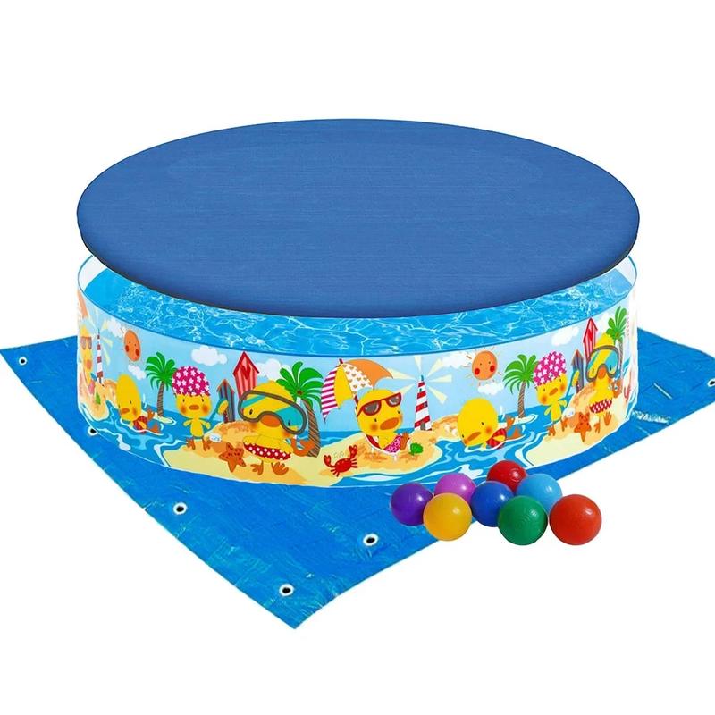 Дитячий каркасний басейн intex 58477-3 «качиний риф», 122 х 25 см, з кульками 10 шт, тенто...