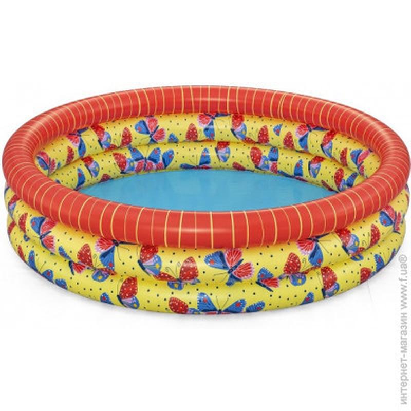 Басейн BW 51202 дитячий, метелик, 168-38 см. Діаметр 168 см Висота 38 см Інформація Діаметр 168 x висота 38см Вік дитини 2+ років Вага 2 кг Виробник Bestway Гарантія не передбачена Дно не надувне Колір червоний Країна-виробник Китай Матеріал високоякісний вініл Насос купується окремо Об'єм води 508 л Тип басейну класичний басейн Упаковка картонна коробка Форма круглий