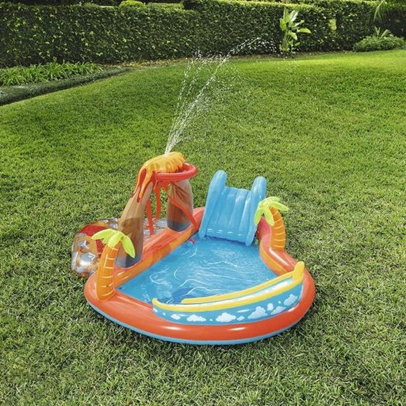 Общие характеристики Виробник: Bestway Страна производитель: Китай возраст: от 2-х лет Вид: надувной игровой центр Тип: открытый, с горкой Форма: овальный Цвет: "голубой", "оранжевый" Серия: Play Center Материал: высококачественный винил Материал толщина: 0. 27 Количество камер: 1 Строительство бассейна: "съемляемая горка" Габариты Длина: 265 см Ширина: 265 см Высота: ≈ 16 см Фактическая высота: 104 см Объем бассейна (при заполнении 80%): 208 л. Комплектация: Стандарт Кульки: 4 шт. Насос для накачивания: нет (рекомендуемый насос Intex 68612) Комплектация: водная горка, фонтан, шарики