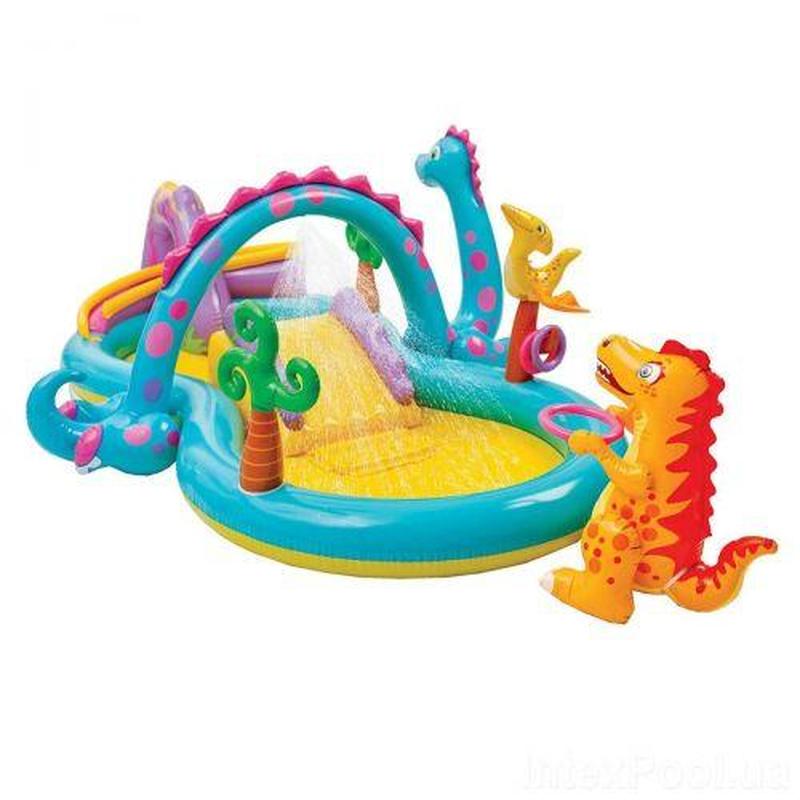 Игровой центр "Планета динозавров" - это мини аквапарк, в котором производитель удачно объединил водный аттракцион с игровым комплексом. Состоит из надувной горки, бассейна, надувных динозавров с кольцами, арки и фонтанчика. Габариты конструкции: 112 см.(высота); 229 см.(ширина); 333 см. (длинна). Объем бассейна - 280 л. Максимальная нагрузка - 81 кг. Бренд: Intex Упаковка: Коробка Цвет: Разноцвет Тип эл-тов питания: Нет Эл-ты питания в комплекте: Нет Вес в упаковке: 8200 г Габариты в упаковке: 17 x 41 x 46 см Габариты без упаковки: 112 x 333 x 229 см Cтрана производитель: Китай Материал: Винил Комплектация: Надувной игрововй центр