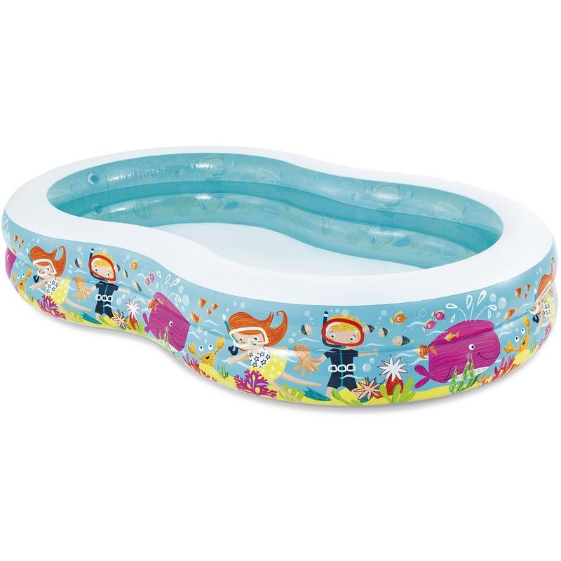 Дитячий надувний басейн зробить відпочинок Вашої дитини радісним. М'які борти гарантують комфорт і безпеку. Басейн має оригінальну форму та яскраве барвисте забарвлення на морську тематику. Надувний басейн 56490 Intex, 572 літра (Райська лагуна) Об'єм: за наповнення 80% — 572 літрів. Розмір басейну 262 * 160 * 46 см. Розмір коробки: 41 * 36 * 10 см. Вага: 5 кг.