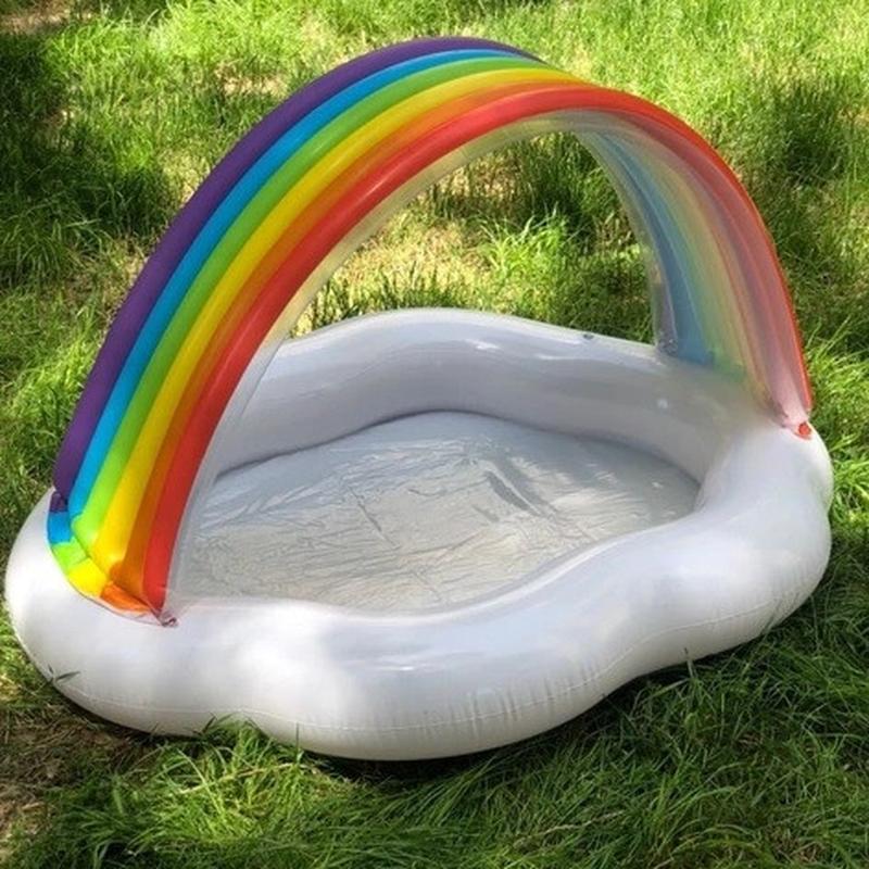 Детский надувной бассейн Радуга предназначен для детей в возрасте от года до трех лет. Бассейн прост и удобен в эксплуатации, не занимает много места, выполнен в стильном дизайне в виде навесной радуги из высококачественного ПВХ. Навес в виде радуги защитит малыша от солнца. Бассейн прост в установке и транспортировке, что делает возможным его использование на природе и в загородном доме. Дно бассейна ненадувное, толщина - 0,25 мм. Размер бассейна 142 * 119 * 84 см. При заполнении на 80% - 82 л. Высота бортика: 13 см.