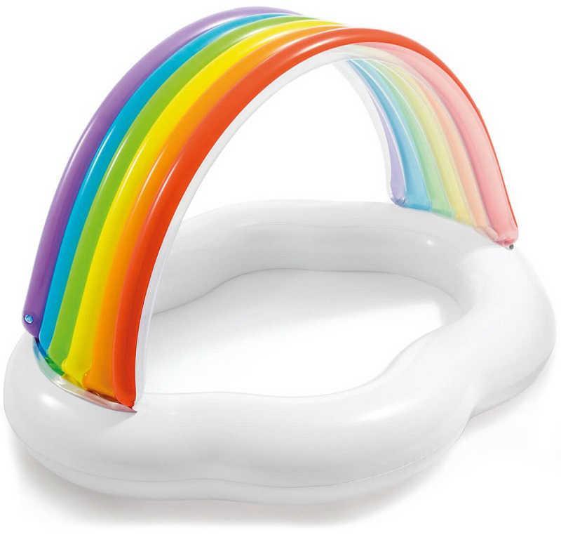 Детский надувной бассейн Радуга предназначен для детей в возрасте от года до трех лет. Бассейн прост и удобен в эксплуатации, не занимает много места, выполнен в стильном дизайне в виде навесной радуги из высококачественного ПВХ. Навес в виде радуги защитит малыша от солнца. Бассейн прост в установке и транспортировке, что делает возможным его использование на природе и в загородном доме. Дно бассейна ненадувное, толщина - 0,25 мм. Размер бассейна 142 * 119 * 84 см. При заполнении на 80% - 82 л. Высота бортика: 13 см.