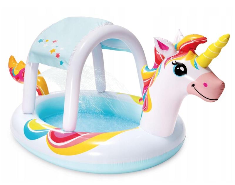 ★➚надувной детский бассейн intex единорог 254 см для купания и отдыха круглый с форсунками...