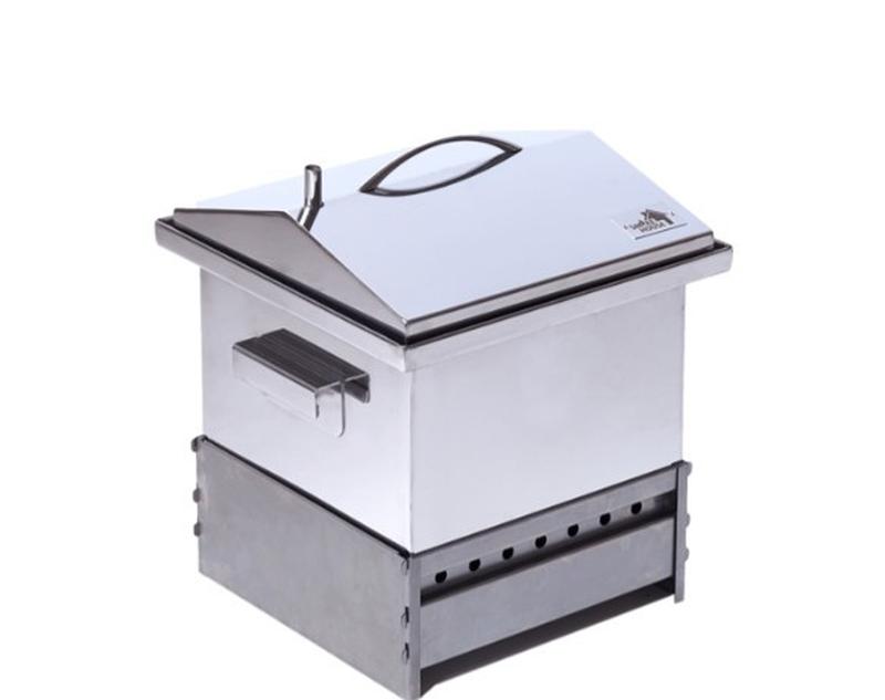 Коптильня компактных габаритов с крышкой в форме "домика" идеально подходит для использования на открытом воздухе и в кухне квартиры или дома. В качестве топлива могут применяться дрова и древесный уголь, любые виды кухонных плит, которые обеспечат достаточный разогрев коптильни. За одну загрузку можно успешно закоптить до 2,5 кг продуктов. Покупая коптильню из нержавейки, вы гарантировано получите подарки: - Система подвесного копчения. - Шланг для отвода дыма. - Набор щепы для копчения (5 пакетов). - Шпагат для обвязки продуктов. - Книга рецептов по горячему копчению. Благодаря наличию крышки в форме "домика" появляется возможность коптить продукты не только на решетках, но и в вертикальном положении. Система загрузки продуктов представляет собой стеллаж с двумя уровнями решеток и поддоном для сбора жира, которые легко помещаются и вынимаются из коптильни. Крышка надёжно герметизируется гидрозатвором, а дым выводится через специальный штуцер. Компания первыми в Украине запустила серийное производство коптилен горячего копчения и гарантирует качество своих товаров. Коптильни для горячего копчения– это надёжное оборудование для вкусного отдыха на природе и домашнего приготовления, лучший презент туристу, охотнику, рыбаку и всем, кто любит вкус копчёностей.