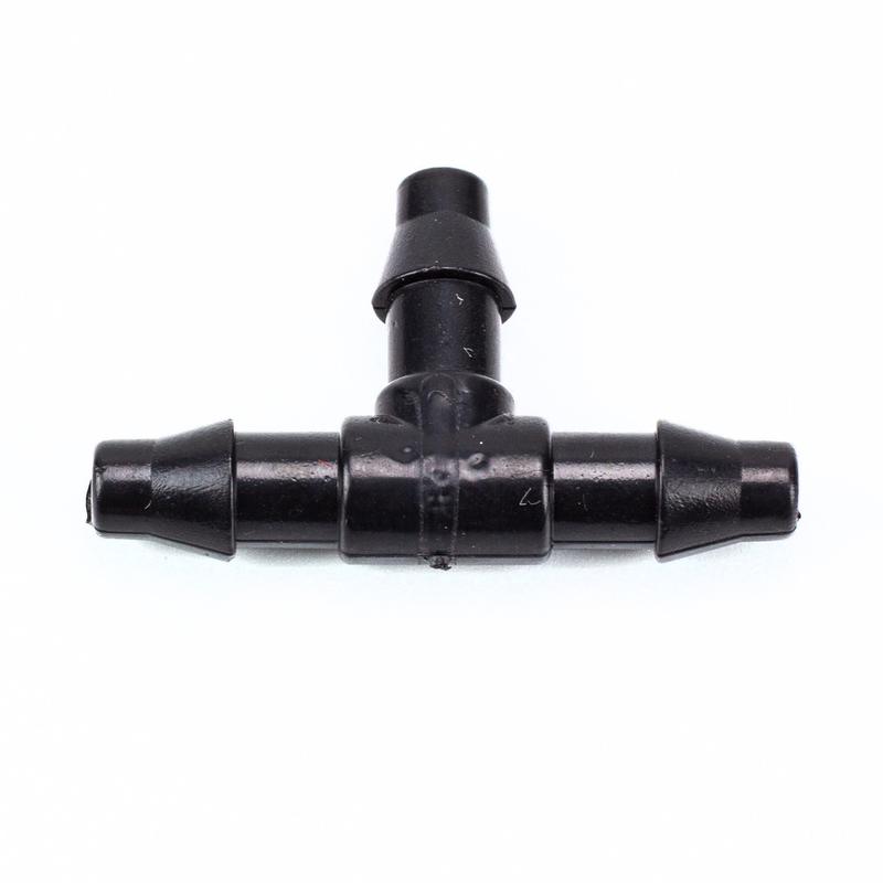 Тройник для микротрубки 4*7 мм ( 4мм внутренний, 7 мм внешний диаметр трубки) используется для соединения трех концов микротрубки 4*7мм. Тройник для микротрубки 4*7 мм может использоваться как стартовое соединение с магистралью. Ершовые фитинги для микротрубки многообразны и покрывают все потребности, которые могут возникнут в проектах на капельный полив. Они очень просты в использовании и не требуют специальных инструментов для монтажа кроме острых ножниц или ножа. Край микротрубки должен быть ровно отрезан, что б избежать протеканий в местах соединения. Характеристика: Совместимость: микротрубка 4*7 мм Материал: высококачественный пластик * эта модель предназначена только для соединения миктрубки. Капельная насадка SD007 соединяется путем короткого отрезка трубки