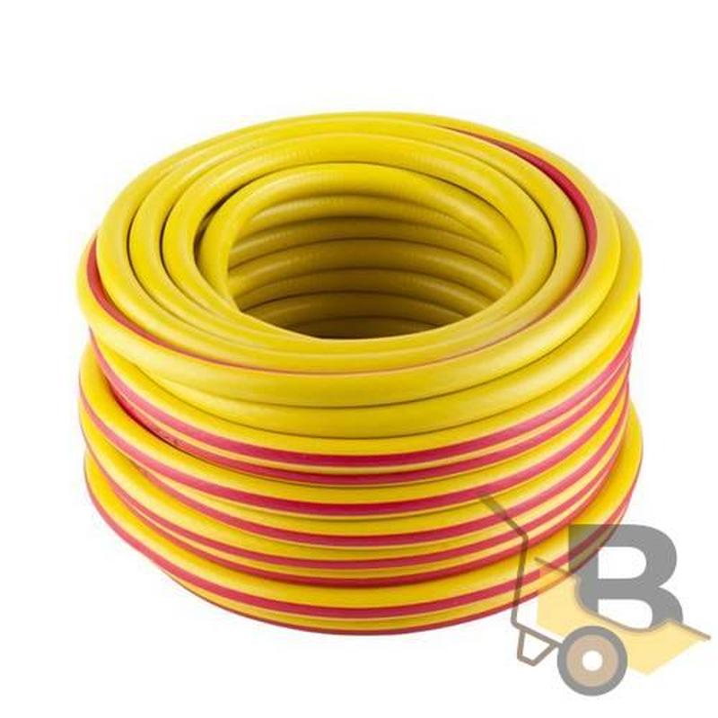 Шланг армированный используется для полива участка, огорода, сада. Является многослойной структурой и включает в себя три прочных слоя. Шланг изготовлен из поливинилхлорида со средним слоем армирования синтетической нитью. Данная вставка усиливает структуру материала и позволяет выдерживать давление до 5 атм.