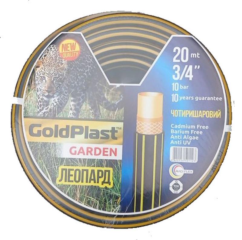 Шланг армований Леопард 3/4 20м Підвищена ефективність поливу саду чи городу забезпечується завдяки використанню армованих поливних шлангів. Наш армований шланг – надійний та міцний інструмент, що спрощує процес догляду за рослинами. - Виготовлені із матеріалу екологічного ПВХ високої якості; - Виявляють високу експлуатаційну міцність завдяки текстильному армуванню з перехресним переплетенням; - Кількість шарів – 4 - Тиск - 15bar \n особливості: - Міцна конструкція: Виготовлений з високоякісних матеріалів, наші шланги мають міцність і довговічність. Армована структура запобігає збоченню та забезпечує стабільність у використанні. - Легкий та гнучкий: Незважаючи на міцність, шланг залишається гнучким та легким, що забезпечує зручність використання та легкість зберігання. - Універсальне застосування: Підходить для поливу садів, городів, газонів, квіткових клумб та інших рослин. Також відмінно підходить для використання у побутових цілях. - Різні довжини: Доступний у різних довжинах, щоб відповідати вашим потребам та забезпечити оптимальне покриття площі. \n Поліпшіть ваш досвід поливу з нашими армованими шлангами. Забезпечте рослини необхідною кількістю води із мінімальними зусиллями.