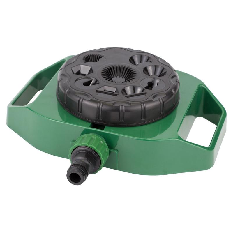 Дождеватель 9-ти режимный (5014525) предназначен для полива приусадебных участков, огородов, клумб, газонов и т.д. Очень простой в использовании не требует сборки и настройки гарантируют равномерное и мягкое орошение без луж. Преимущества: - Ударопрочный пластик; - Работает даже при низком давлении; - Струи имитируют естественный эффект дождя.