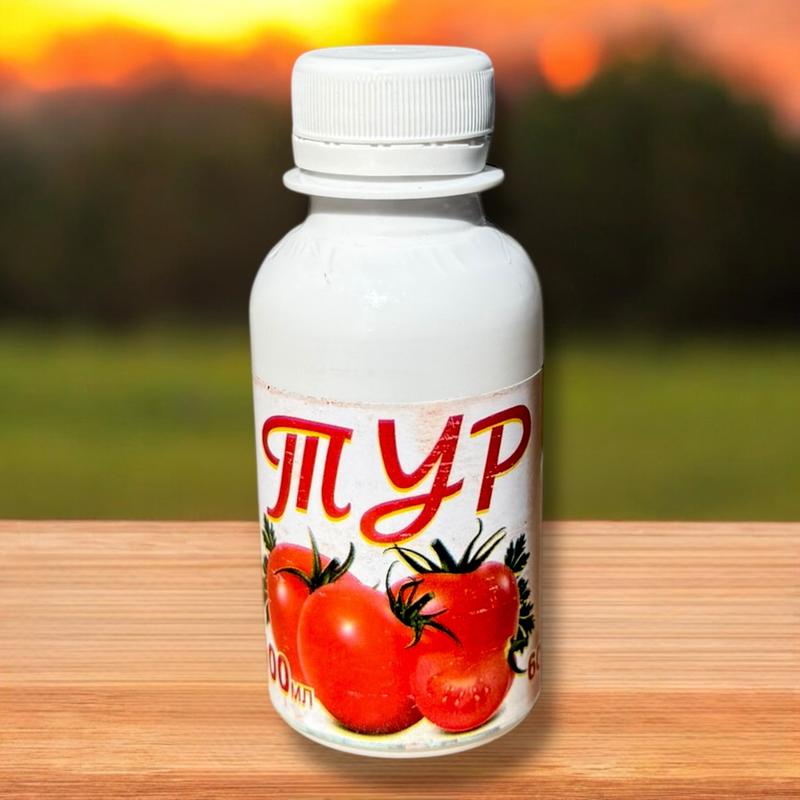 Стимулятор плодообразования Тур для томатов и других культур Волшебная грядка Украина Препарат для ускорения роста и плодообразования Тур используют для обработки овощных культур, плодовых деревьев и кустарников с целью увеличения завязей и плодообразования. Действие препарата основано на свойствах основного компонента - хлорхолинхлорида, отличительной чертой которого является ограничение чрезмерного роста растений, укрепление корневой системы и повышение урожайности до 30%. Возделанные растения становятся более устойчивыми к неблагоприятным погодным условиям и заболеваниям. Стимулятор роста Тур используют для улучшения плодообразования томатов, баклажанов, перца, арбуза, дыни, винограда, малины и других культур. Преимущества стимулятора роста - Средство стимулирует укрепление корневой системы, увеличивает урожайность до 30% и улучшает вкусовые качества плодов. - Препарат эффективен при небольших нормах внесения. - Подкормка способствует дружескому и ускоренному созреванию плодов - При применении стимулятора роста Тур растения становятся более устойчивыми к неблагоприятным погодным условиям окружающей среды и заболеваниям. - Средство способствует образованию большего количества завязей и препятствует формированию пустотелых плодов. Инструкция, способ применения, состав и норма расхода стимулятора роста плодов Тур 100 мл Действующее вещество: хлорхолинхлорид 600 г/л. Культура и норма расхода препарата: Культура Норма расхода Особенности Овощные, бахчевые, плодовые, ягодные культуры и виноград 10-12 мл/10 л воды, на одну сотку земли Применять препарат не более двух лет. При обработке 10 мл средства растворить в 10 л воды и опрыскивать растения, не допуская стекания, за 10 дней до цветения. Вторую обработку провести на 10-й день после цветения культур, а третью в начале созревания плодов. Можно использовать для опрыскивания виноградных кустов. При правильных нормах внесения препарат не наносит вреда культурам и окружающей среде.
