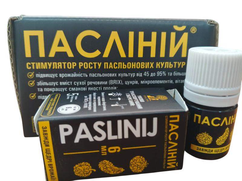 Препарат містить у своєму складі аналоги природних регуляторів росту пасльонових культур: томата, перцю і баклажана. Проявляє чітко виражений атрагуючий ефект. Під час вирощування пасльонових культур в осінньо-зимово-весняний період в умовах теплиць часто порушується процес плодоутворення, що спричиняється коротким днем, недостатньою інтенсивністю світла, температурним режимом. У відкритому ґрунті існують два критичних періоди, коли не відбувається зав'язування плодів: понижені нічні температури, а також спека і сухість повітря. За несприятливих умов ростові речовини в рослинах утворюються в недостатній кількості або не утворюються зовсім. А це призводить до того, що квітки не запліднюються або опадають через нестачу поживних речовин. Стимулятор Пасліній містить у своєму складі аналоги природних регуляторів росту пасльонових культур: томата, перцю і баклажана. Пасліній проявляє чітко виражений атрагуючий ефект. Клітини твірної тканини (меристеми) «залучають» до себе поживні речовини та воду, забезпечуючи ефективність фізіологічних процесів і швидкий ріст плодів. Внаслідок інтенсивного надходження поживних речовин до зростальних репродуктивних органів відбувається перерозподіл пластичних речовин, що викликає зміщення співвідношення між вегетативними та репродуктивними органами на користь плодів. Стимулятор росту Пасліній має наступні переваги: - поліпшується зав'язування плодів томата, перцю, баклажана, особливо за несприятливих умов; - значно збільшується ранній урожай плодів (на 20 - 40% залежно від сорту й умов вирощування), збір стиглих плодів починається на 7 - 10 днів раніше; - істотно підвищується загальна врожайність (на 45 - 95%); - збільшується маса одного плода; - вміст вітамінів зростає на 15%; - підвищується якість вирощених плодів: вони більші та мають кращий смак завдяки підвищеному вмісту сухої речовини (BRIX), цукрів та мікроелементів. Рекомендації по застосуванню Культура Строки внесення Норма внесення Томат, перець, баклажан Цвітіння першої китиці 1 мл на 10 л води Цвітіння другої китиці Рекомендована норма внесення препарату: 1 мл на 10 л води, на 1 сотку Оптимальний результат дає дворазова обробка: томати: - 1-а обробка - цвітіння першої кисті - 2-а обробка - цвітіння другий кисті; перець, баклажан: - 1-а обробка - початок масового цвітіння (більше за 50%) - 2-а обробка - через 10 - 14 днів.