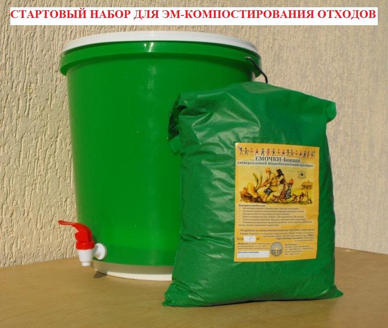 Стартовый набор для компостирования пищевых отходов Наборы состоят из ЭМ-контейнеров 15 л и упаковка препарата "Эмочки-Бокаши" . Такое сочетание товаров удобно при транспортировке и позволяет сэкономить средства на покупку данных товаров по-отдельности. У нас Вы можете купить набор для создания компоста в домашних условиях по наилучшей цене. Рекомендуем брать не меньше 2 ведер - это всегда удобнее, ведь пока в одном ведре отходы проходят ферментацию и Эмочки-бокаши перерабатывают отходы в биогумус, второе готово к использованию - наполнению. И так по кругу. А когда семья больше 3х человек, тогда лучше взять набор с тремя ведрами. Варианты упаковок: S (одно ведро + 1 кг бокаши) = 503грн. М (одно ведро + 3 кг бокаши) = 625грн. L (два ведра + 3 кг бокаши) = 936грн. XL (три ведра + 3 кг бокаши) = 1245 грн.