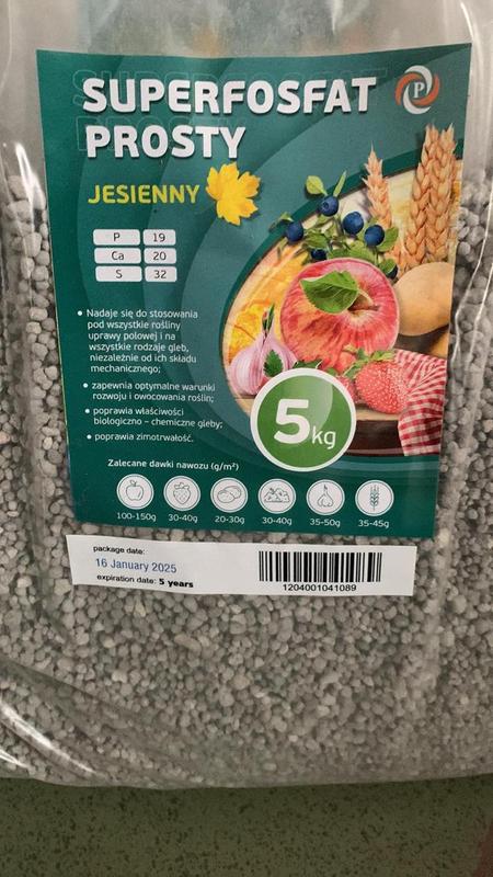 Простой суперфосфат - это одно из наиболее распространенных и доступных фосфорных удобрений. Вот основная информация о нем: Состав: Основным действующим веществом является фосфор в виде водорастворимых фосфатов. Содержание фосфора (в пересчете на P2О5) обычно составляет 16-20%. Кроме фосфора, простой суперфосфат содержит: Кальций (Ca) - около 17-20% (в виде CaO). Сера (S) - около 25-30% (в виде SO3.) Также могут присутствовать в небольших количествах другие элементы, такие как магний, бор, медь, марганец, цинк. Характеристики: Выпускается в виде гранул или порошка светло-серого цвета. Гранулированная форма удобнее в применении, меньше пылит и обладает лучшей сыпучестью. Хорошо растворим в воде, что обеспечивает доступность фосфора для растений. Эффективен на различных типах почв, особенно на щелочных и нейтральных. На кислых почвах его эффективность может снижаться из-за связывания фосфатов алюминием и железом. Применение: Простой суперфосфат используется для: Основного внесения под вспашку или перекопку почвы осенью или весной. Это обеспечивает фосфором растения на протяжении всего вегетационного периода. Нормы внесения зависят от культуры и плодородия почвы и могут составлять от 40-50 г/м² на окультуренных почвах до 60-70 г/м² на неокультуренных. Припосевного внесения непосредственно в рядки или лунки при посадке семян или рассады. Небольшое количество удобрения (2-3 г на погонный метр или 3-4 г в лунку) способствует лучшему укоренению молодых растений. Подкормок в течение вегетации. Удобрение вносят в сухом виде с последующей заделкой в почву (15-20 г/м²) или в виде водного раствора (20-30 г на 10 л воды). Преимущества: Обеспечивает растения необходимым фосфором, который важен для развития корневой системы, цветения и плодоношения. Содержит серу и кальций, которые также являются важными элементами питания. Улучшает качество плодов, повышает их сахаристость и содержание полезных веществ. Способствует более раннему созреванию урожая.