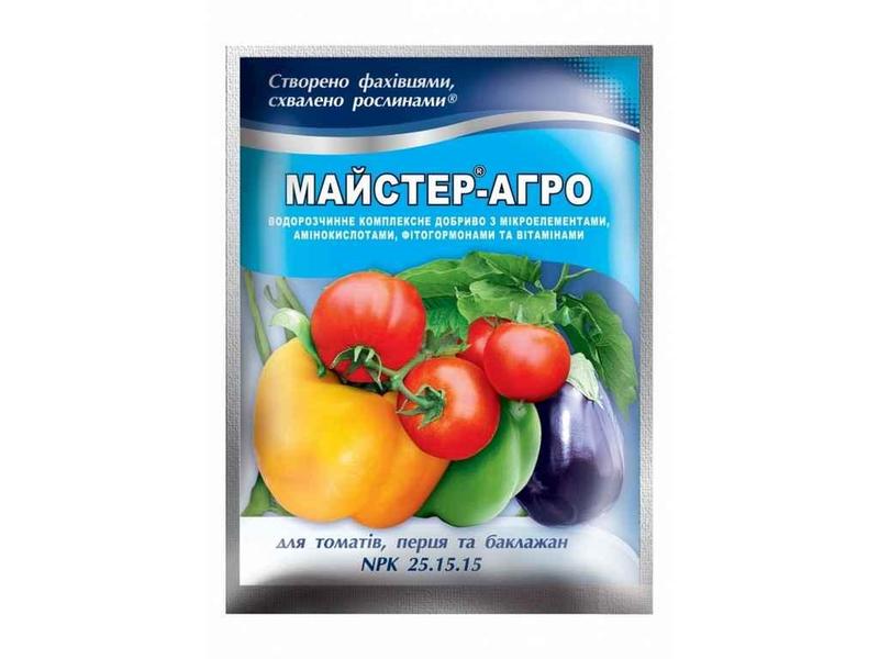 Водорастворимое сухое удобрение для томатов,перца и баклажанов, 100г тм мастер-агро
