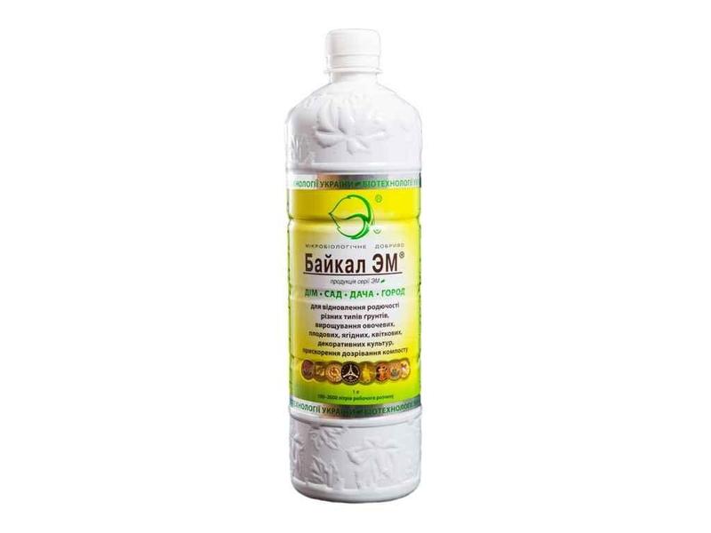 Властивості:¶¶ відновлює родючість ґрунту і вміст доступних для рослин елементів живлення;¶ прискорює процеси гумусоутворення;¶ поліпшує повітро- і водопроникність ґрунту;¶ підвищує стійкість рослин до хвороб та шкідників;¶ збільшує врожайність і подовжує терміни плодоношення;¶ дозволяє отримати екологічно чисті продукти харчування;¶ прискорює дозрівання компосту.¶¶¶Байкал ЄМ® – унікальний мікробіологічний препарат, в складі якого наявний широкий спектр ефективних мікроорганізмів, що мешкають у ґрунті: молочнокислі, фотосинтезуючі, азотофіксуючі бактерії, сахароміцети, дріжджі та інші (загалом, понад 80 штамів). Взаємодіючи в ґрунті, вони виробляють ферменти і фізіологічно активні речовини, амінокислоти, нуклеїнові кислоти та ін. Байкал ЄМ® сприяє живленню рослин, стимулює утворення нових пагонів та коренів, підвищує стійкість рослин до хвороботворних організмів і пригнічує патогенну мікрофлору в ґрунті (бактерії, гриби, віруси), пришвидшує розкладання органіки, збільшує повітро- і вологоємність ґрунту.¶¶ ¶¶Призначення: для вирощування всіх видів овочевих, плодових, ягідних, декоративних, польових культур, підвищення родючості ґрунту, пришвидшення дозрівання компосту.¶¶¶Ефективність: сприяє живленню рослин, стимулює ріст вегетативної та кореневої систем, підвищує стійкість рослин до хвороботворних організмів і пригнічує патогенну мікрофлору в ґрунті (бактерії, гриби, віруси), пришвидшує розкладання органіки, збільшує повітро- і вологоємність ґрунту.