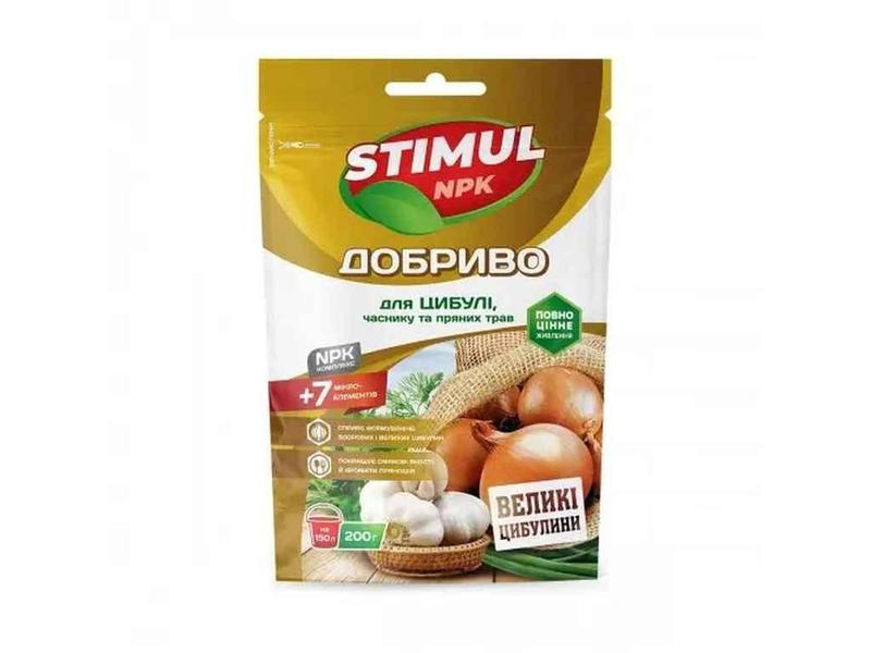 Сухое удобрение кристаллическое для лука, чеснока и пряных трав дой-пак 200г тм stimul npk