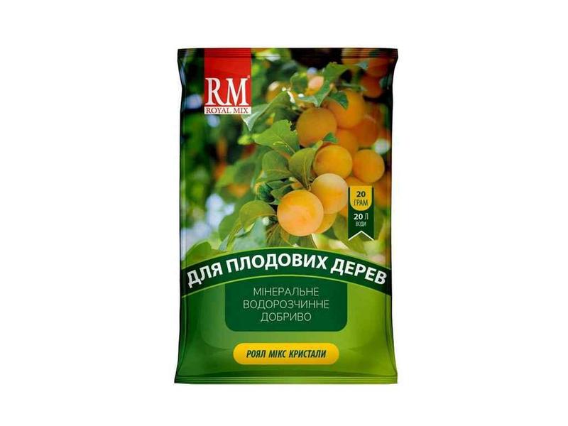 Кристалічне добриво 10-18-32 Royal Mix для плодових дерев – містить легкодоступні форми поживних речовин, підвищений вміст калію та фосфору, які забезпечують рівномірний ріст та розвиток кореневої та листової системи. На нашому сайті є можливість купити добриво для плодових дерев за кращою ціною та з безкоштовною доставкою. Інтенсивне цвітіння, завдяки добриву, сприяє кращому формуванню зав’язі, приросту врожаю, покращенню його якісних та смакових властивостей. Збагачення залізом, міддю та цинком підвищує імунітет рослин, знижує вплив несприятливих умов та допомагає підготувати дерева до кращої перезимівлі. НОРМИ І СПОСІБ ВНЕСЕННЯ: підживлення культури потребують у період вегетації, з періодичністю 1-2 рази на місяць. Рекомендовано почергово проводити кореневе та позакореневе (листкове) підживлення, фертигацію. Попередньо зволожувати грунт. Не обприскувати квіти та плоди. ПРИГОТУВАННЯ РОБОЧОГО РОЗЧИНУ: для кореневого підживлення 1г добрива (1 мірна ложка). Витрати розчину до 2л для малих дерев, до 10л для великих. Для позакореневого підживлення 2г добрива (2 мірні ложки) розчинити в 1 літрі води (до повного змочування листя). При прояві дефіциту елементів живлення концентрацію розчину збільшити у 1,5 рази. Для дощування та фертигації застосовувати концентрації розчинів 0,005-0,3%. СКЛАД: N-10%, P2O5-18%, K2O-32%, Fe-0.007%, Zn-0.01%, Cu-0.01. Мірна ложка в комплекті!