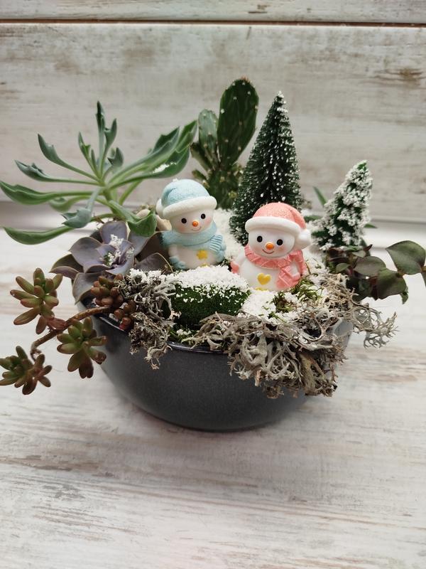 Зимняя композиция из растений и декора.ulti придаст настроение, уюта.Рослины в уходе не привередливы - минимум полива и прямое солнце