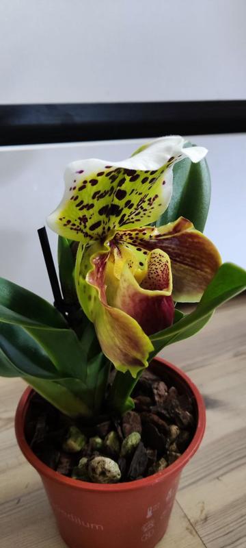 орхидея басмак (пафиопедиум) с большой диткой, цветок восковая 13 см, пересылка с утеплением