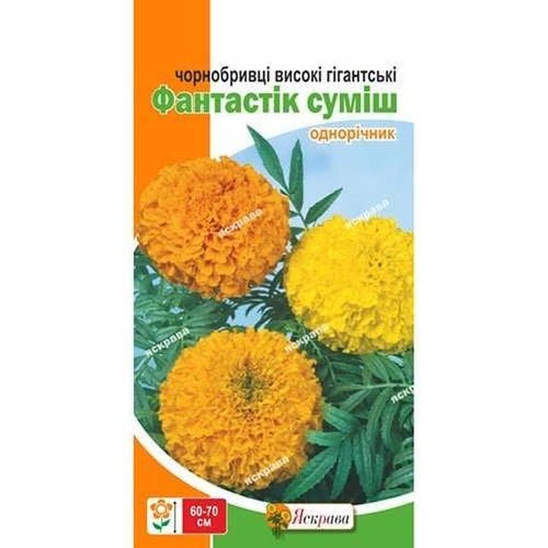 Насіння яскрава чорнобривці високі гігантські фантастик жовті 0.3 г