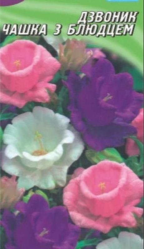 ДЗВОНИКИ ЧАШКА З БЛЮДЦЕМ 0,05 г Термін 2025 рік Насіння Дворічник. Холодостійка рослина висотою 75-90 см, діаметр куща 30 см. Чашка з блюдцем - один з найбільш цікавих різновидів садових дзвоників. Квіти оригінальної форми мають яскраве забарвлення різних кольорів від яскраво- білого до темно-фіолетового. Ідеальна рослина для квіткових бордюрів, добре поєднується з дельфініумом, мальвою, люпином, георгінами, карликовими соняшниками та ін. Не витримує перезволоження.