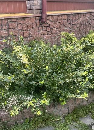 1 - 3 фото - 1000 грн Бересклет Форчуна Санспот —вечнозелёный, среднерастущий кустарник. Среднегодовой прирост: 10-15 см. Овальная крона с яйцевидными, глянцевыми, упругими листьями, имеющими пеструю окраску. Листва тёмно-зелёная по краям, кремово-жёлтая в середине с молочно-белой полосой по центру. Период цветения: июнь — июль. Цветки мелкие, невзрачные, с ярким зеленоватым оттенком. Цветы прекрасно оттеняют тёмную листву. Осенью бересклет покрывается мелкими, белыми, несъедобными шариками-ягодами. Бересклет хорошо растет на освещенных участках с нейтральной или слабощелочной почвой. Требует постоянного рыхления и санитарной обрезки, легко переносят зиму. Растение используют для формирования красиво лиственного ковра в промежутках между деревьями, оформления бордюров. Размер куста: Длина: 2, 30м Ширина 2 ,10м Высота 0,60 м В продаже есть молодые кустики от 50 грн 4 - 9 фото Можевельник В наличии 2 куста ( продаю парой) Цена 2000 грн Можжевельник — невысокий хвойный кустарник, относится к семейству кипарисовиков. Он вырастает до невысокого, но разлапистого декоративного кустарника. Крона раскидистая, плотная и несимметричная. За вырастает на 10-15 см. имеет зеленую крону. Прирост приобретает ярко- желтый цвет с золотистым оттенком и появляется в самом начале весны. 1 куст 7 -9 фото Длина 1,50 м Ширина 1,40 м Высота 0,50 м 2 куст 4 - 6 фото Длина 1,90 м Ширина 1,50 м Высота 0,50 м Также есть в продаже Форзиция - 1000 грн большой куст - последнее фото Есть кустики от 50 грн Форзиция – многолетний кустарник семейства маслиновых. Форзиция украшает своим цветением сады с марта по апрель. Её золотисто-жёлтые четырёхлистные цветки, похожие на колокольчики, пушистым облаком окутывают гибкие, безлистные стебли. А вот овальные, чуть зубчатые листья появляются позже – после окончания периода цветения. Уникальное растение: сначала цветёт, а потом выпускает листья и молодую поросль. Хоста подорожниковая - 500 грн Пышный зелёный куст украсит Ваш участок. Морозоустойчива, не прихотлива, подходит любая почва. Любит тень и полутень. Большой куст ( более 50 отростков) - 500 грн 1 делёнка ( 1 точка роста) - 10 грн. Кусты можно сформировать и обрезать по вашему желанию. Житомир самовывоз. Пересылка курьером Новая Почта Отправляю после оплаты