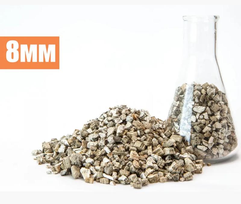 Вермикулит - природный, экологически чистый, нетоксичный минерал, получаемый из вермикулитового концентрата (природного минерала группы гидрослюд шарообразного строения), путем обжига сырья в печах. В результате нагрева при температуре 800 - 900 0 С происходит его вспучивание - увеличение объема в (5 - 20) раз, в результате получается ценный, экологически чистый природный сыпучий материал, что принято называть - вспученный вермикулит. Основной компонент вермикулита - гидрированная слюда, не оказывающая вредного воздействия на организм человека. Наиболее популярной отраслью применения вермикулита является растениеводство. Его используют для: уменьшения процесса засолки бессменных тепличных почв, удержания влаги в почве, снижения заболеваемости корневой гнилью, обогащение почвы ценными микроэлементами магния, калия, кальция, марганца, железа и кремния и стимуляции роста корневой системы, как результат - увеличение урожайности на 12- 17% дренажа при выращивании комнатных растений и их защиты от перепадов температуры, хранения овощей и фруктов, а также для гидропонного выращивания растений и прочее. Вермикулит (фракция 8 мм) используется в ландшафтном дизайне, для оформления альпийских горок, для высадки саженцев лиственных и хвойных деревьев, в качестве сорбента для очистки сточных вод, для улучшения свойств почвы. ПРЕИМУЩЕСТВА: снижает процесс засолки бессменных тепличных грунтов; удерживает влагу в почве; снижает заболеваемость корневой гнилью (благодаря превосходному водопоглощению - 400% от собственного веса); является носителем ценных микроэлементов: Магний (Mg) - 10 - 14 %, Калий (K) - 3 - 5 %, Кальций (Ca) - 1,2 - 2%, Марганец (Mn) - 0,8 - 1%, Железо (Fe) - 5,6 - 6,5%, Кремний (Si) - 34 - 36%; увеличивает урожайность на 12-17% (за счет стимуляции роста корневой системы в том слое почвы, где наибольшее количество питательных веществ); снижает токсичность излишков питательных веществ; увеличивает срок службы торфянистых грунтов; рН 6,8 - 7,0 (нейтральный, слабощелочной); инертный, химически и биологически стойкий, стерильный; является отличным регулятором воздушного и влажного режима; обладает высокими сорбционными свойствами; хорошо сохраняет свою структуру в почве; может выполнять роль дренажа при выращивании комнатных растений; возможность долговременного использования (вермикулит долго не теряет своих поглощающих способностей); легкость материала (на 1 м3 субстрата необходимо примерно 150 кг вермикулита, а торфа для заполнения такого же объема необходимо было бы в 4 раза больше); обладает низкой теплопроводностью (он медленно нагревается на солнечном окне и медленно охлаждается на холодном подоконнике. Таким образом, он защищает корневую систему комнатного растения от перепадов температуры). Вермикулит широко используется не только в составе разных видов земляных смесей, но и в чистом виде в гидропонном выращивании растений. Вермикулит широко применяют для: мульчирования и аэрации почвы; изготовление грунтовых смесей; гидропоники; проращивание семян; в цветоводстве и ландшафтном дизайне; хранение овощей и фруктов; выращивание саженцев и рассады.