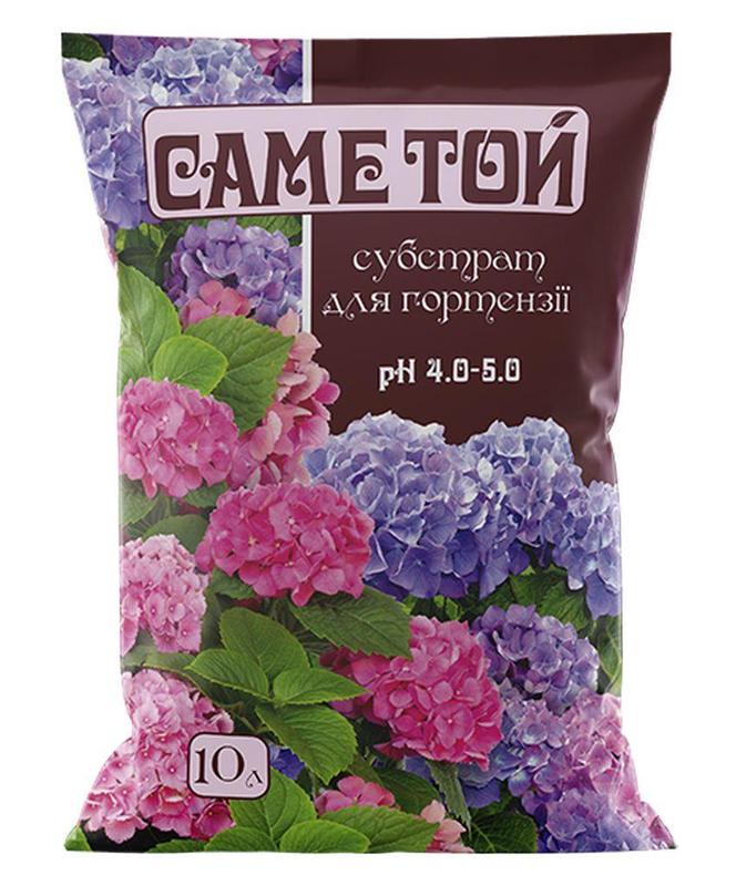 Категорія товарів: субстрати. Діюча речовина: суміш торфів, підкислювач природного походження, органічні домішки, річковий пісок, добрива. Виробник: ТД Кіссон. Властивості: забезпечує оптимальний рівень кислотності субстрату (pH) для гортензій та інших видів кислолюбивих квітів; забезпечує рослини необхідними елементами живлення; підвищений вміст заліза враховує індивідуальні потреби гортензії в даному елементі; покращує схожість насіння, приживлюваність розсади та вкорінення живців; має повітро- і вологопроникну структуру субстрату; створює комфортні умови росту для рослин, підвищує імунітет; пригнічує розвиток шкідливої мікрофлори; позбавлений насіння бур’янів, шкідників та збудників хвороб. Саме Той – повністю готовий поживний субстрат для гортензії виробляється з суміші високоякісних торфів із додаванням підкислювача природного походження та має підвищений вміст заліза. Субстрат призначений для вирощування и пересаджування багатьох видів гортензій. Використання субстрату забезпечує комфортні умови для росту та розвитку рослин, підвищує декоративні властивості, забезпечує рясне та тривале цвітіння, гарантує яскраве забарвлення квітів. Призначення: для вирощування багатьох видів гортензій, для висіву насіння та розмноження живцюванням. Ефективність: покращує розвиток рослин, посилює цвітіння та забезпечує формування синього кольору квітів у кислолюбивих сортів гортензії. Склад: Компоненти: суміш торфів; підкислювач ґрунту природнього походження, органічні домішки, річковий пісок. Азот (NH4+NO3) - 40; Фосфор (P2O3) - 180; Калій (K2O) - 160; Сірка (SO2) - 70; Залізо (Fe) - 30; Мікроелементи: MgO, B, Mn, Cu, Zn. Застосування: Висів насіння: Наповнити ємність субстратом Саме Той. Дрібне насіння змішати з піском і рівномірно розподілити на площі посіву, землею не присипати, лише злегка притиснути до ґрунту. Ґрунт зволожують водою з пульверизатору і накривають склом. Сіянці, що підросли і мають 2-3 пари молодих листочків, пікірують, тобто пересаджують у горщики. Висадка садових рослин: Підготувати посадкову яму. Добре полити. Поставити рослину по центру ями. Коренева шийка рослини повинна бути на рівні ґрунту. Заповнити вільні проміжки субстратом Саме Той, злегка ущільнюючи ґрунт.