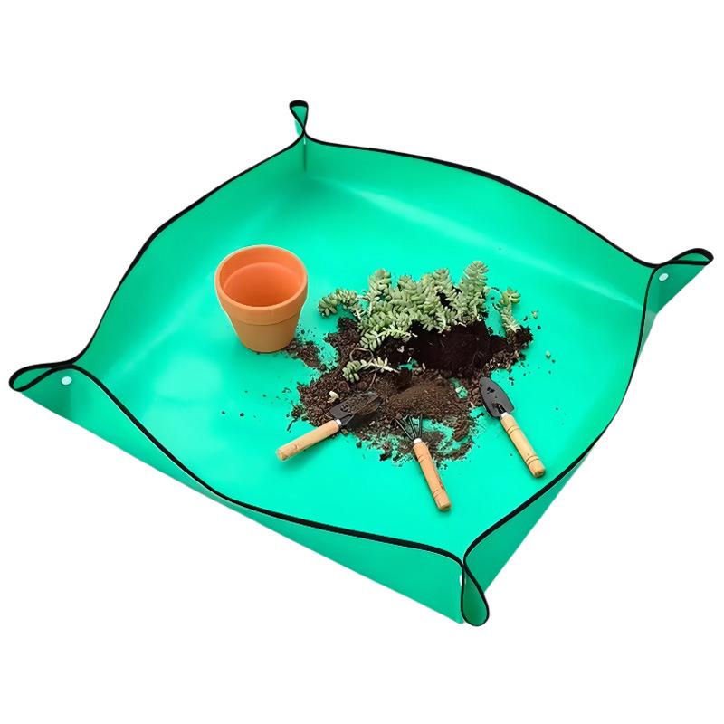 Коврик для пересадки растений - это незаменимый аксессуар для любимого сада, огорода или дачи. Садовый коврик для рассады выполнен из плотного непромокаемого полиэтилена и имеет большой размер 50х50 см. Материал безвреден для пищевых продуктов и устойчив ко многим химическим веществам. Бортики высотой 9 см с фиксирующими кнопками обеспечивают защиту от грязи и воды, позволяют сохранить рабочее пространство сухим дома, в теплице, на балконе или террасе. Коврик для пересадки растений и цветов легко промывается водой или очищается салфетками. Многофункциональный коврик значительно облегчит процесс пикировки и выращивания растений, цветов в горшках и рассады. Но он не только дачный помощник - его также можно использовать в хозяйстве как садовый подколенник, раскладной коврик для ремонта авто и поддон для коляски. Также ковер подойдет для ухода за животными в качестве подложки под лоток или для груминга. Приобретая наш товар для дачи, Вы получаете высокое качество исполнения, универсальность и надежность.
