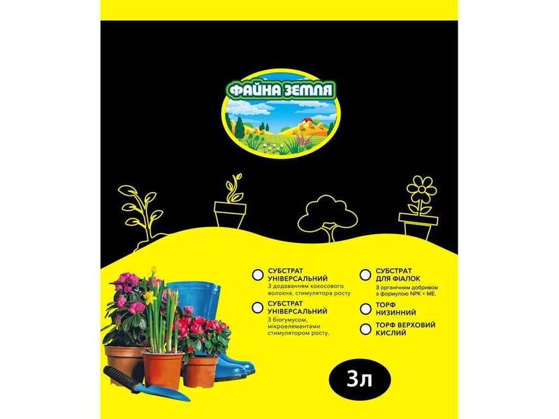 Субстрат с кокосовым волокном, удобрением ме универсальный 3л тм файна земля