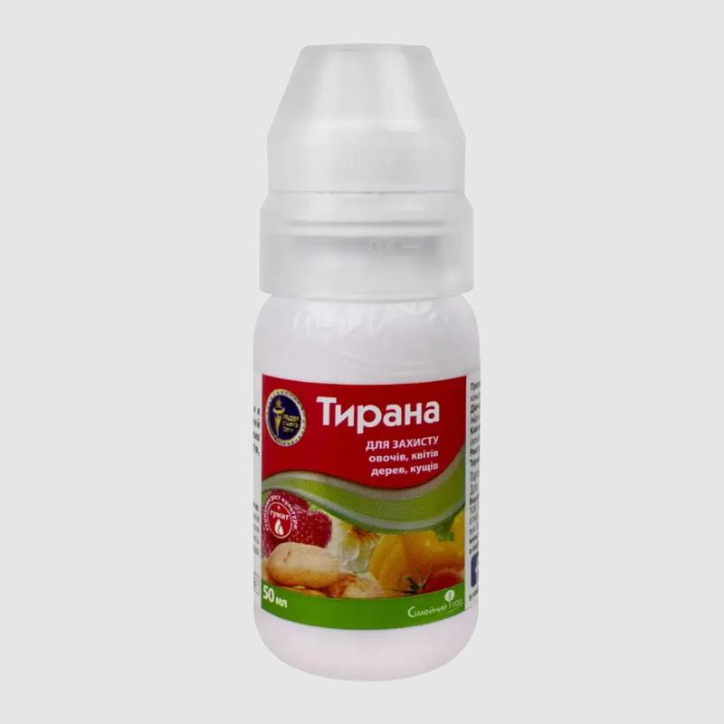 Инсекто-фунгицидный протравитель посадочного материала Тирана Семейный Сад 50 мл Двухкомпонентный протравитель контактного действия Тирана предназначен для протравливания клубней картофеля с целью защиты от насекомых-вредителей и предотвращения развития грибковых заболеваний. Средство сочетает в себе комбинацию из 2-х действующих веществ: имидаклоприд и тиабендазол. Механизм воздействия имидоклаприда заключается в блокировании прохождения импульсов в нервной системе паразитов, в результате чего у них развиваются конвульсии и паралич, приводящий вредителей к гибели. Тиабендазол защищает овощи и плоды от болезней, образуя на их поверхности долго сохраняющийся защитный слой. Высокоэффективный препарат, применяется для обработки посадочных клубней картофеля, а так же обработки корней и посадочного материала, с целью защиты в период вегетации от широкого спектра насекомых вредителей и грибковых заболеваний. После обработки растение защищено от таких вредителей: колорадский жук, тля, трипс, совка, цветоед, долгоносик, плодожорка, пипильщик, листовертка, блошка, белокрылка, щитовка, червец, мотылёк, а так же болезней в виде ридоктониоза, фитофтороза, септориоза, пятнистостей, антракноза, фомоза, альтернариоза, переноспороза, парши. Препарат проникает в ткани растений и защищает их в период роста до 6 недель. Преимущества препарата для защиты растений Тірана - Препарат контролирует широкий спектр возбудителей грибковых заболеваний - Средство Тирана не вызывает резистентности у патогенов - Протравитель эффективен при неблагоприятных погодных условиях и перепадах температур - Препарат обеспечивает длительную и эффективную защиту растений на протяжении 30-40 дней Инструкция, способ применения, состав, дозировка и норма расхода протравителя Тирана 50 мл Семейный Сад Обработку клубней препаратом проводят заранее за 2-3 недели перед высадкой. Замачивание производят на 2 часа перед высадкой либо посевом. Культура Вредный объект Заболевания Норма расхода Картофель Колорадский жук, проволочник, личинка хруща, тля Парша, ризоктониоз, серебристая чешуя, обычная бородавчатость. фузариозная корневая и стеблевая, белая гниль, сухая гниль (фомоз), серая гниль 15 мл на 0,3-0,4 л воды на 30 кг картофеля Замачивание/полив семян овощей и цветов, корней рассады, деревьев и кустов 3 мл на 1 л воды на 1 кг луковиц или корневищ. Капельный полив или полив корней : 15 мл на 10 л воды Действующее вещество: имидаклоприд 280 г/л, тиабендазол 80 г/л.