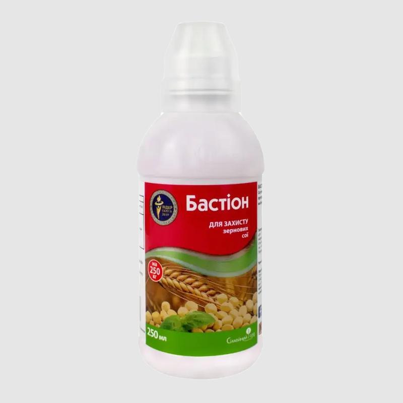 Протравник посадкового матеріалу Бастіон Сімейний Сад Комбінований фунгіцидний протравник, застосовується для оброблення посадкового матеріалу пшениці, позими та сої від різних видів захворювань, як-от: ридоктоніоз, фітороз, септориоз, гідіум, мілідиум, альтернаріоз, плямистості, антракноз, іржа, хлороз, борошниста роса, бактеріоз, монилиоз, фомоз, альтернаріоз, перенос-тропороз, макроспорт, фузаріоз, рингосопероз, гнилі, цвіль, кучерявість. Препарат поглинається рослинами, захищає кореневу систему та надземну їх частину, має тривалий період захисної дії до 8 тижнів. Завдяки наявності двох активних речовин препарат унеможливлює виникнення резистентності в патогенів і спор грибів. Переваги Бастіона - Має паростостимулювальні властивості - Сумісний з іншими пестицидами та добривами - Не заподіює шкоди довкіллю людини - Економічний завдяки низьким нормам внесення Бастіон інструкція, норма витрати та спосіб застосування протравника 250 мл Культура Болезни Норми витрати Спосіб оброблення Пшениця ярова та сима Пильна, тверда головня, септориоз, фузаріоз і гельмінтоспортиз кореневі гнилі, пліснявість насіння. 100 мл на 1 л води на 100 кг Протравлення насіння Соя Пильна, кам'яна, чорна (ложна) головня, смугаста, сітчаста плямистість, фузаріозні та гельмінтоспортозні кореневі гнилі, мурошниста роса, пліснявість насіння 100-150 мл на 1 л води на 100 кг Активна речовина: дифеньйоназол 30 г/л, ципроконазол 6.25 г/л.