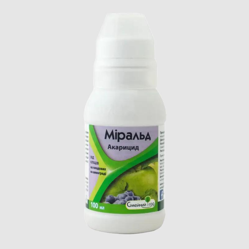 Акарицид для плодових культур Міральд Селетивний контактний акарицид, застосовується для оброблення плодових дерев і винограду від широкого спектра кліщів. Препарат має швидкий нокдаун ефект, діє на всі стадії розвитку кліщів, а також має тривалий період захисної дії до 2 тижнів, залежно від погодних умов. Переваги препарату Міральд - Не заподіює шкоди корисним комахам - Сумісний з іншими пестицидами та добривами - У комах не виникає резистентності до препарату - Контролює всі види та стадії рослинних кліщів Міральд інструкція, спосіб застосування та норма витрати акарициду 100 мл Культура Шкідливий об'єкт Норма витрати Спосіб обробки Яблуня Кліщі 10-15 мл на 6-8 л води Обприскування в період вегетації Виноград 10 мл на 5 л води Соя 10 мл на 5 л води на 1 сотку
