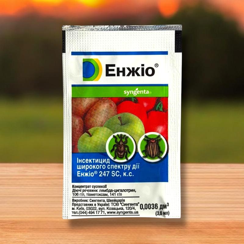 Энжио Syngenta Инсектицид Энжио является мощным средством борьбы с разнообразными вредителями в садах и огородах. Благодаря уникальной комбинации двух активных компонентов - лямбда-цигалотрина и тиаметоксама - препарат оказывает контактное, остаточное, кишечное и отпугивающее действие на насекомых. Характеристики и преимущества: - Эффективен против разнообразных садовых и огородных вредителей. - Лямбда-цигалотрин и тиаметоксам дополняют друг друга, делая невозможным устойчивость вредителей. - Не накапливается в почве, не наносит вреда растениям и окружающей среде. - Инсектицид помогает защищать корневую систему растений от почвенных вредителей. - Гарантирует эффективность при разных погодных условиях. - Средство можно сочетать с другими пестицидами для комплексной защиты растений. Инструкция и применение: Действующее вещество: лямбда-цигалотрин - 106 г/л, тиаметоксам - 141 г/л. Культура Норма расхода мл/10 л Норма расхода л/сотку, дерево Вредители Яблоня 3.6 2-5 Яблоневый цветоед, букарка, казарка, тля, яблоневый пилильщик, моли, листовертки Томаты 3.6 5 Колорадский жук, тля Лук 3.6 5 Луковая муха, трипсы Капуста 3.6 5 Комплекс вредителей Картофель 3.6 5 Колорадский жук, тля - Рекомендуемая норма расхода рабочего раствора - 3.6 мл на 1 литр воды. - Применяется для защиты свеклы сахарной, винограда, гороха, капусты, картофеля, пшеницы, подсолнечника, сорго, томатов, лука, яблони, ячменя от разных вредителей. Инсектицид Энжио - ваш эффективный помощник в борьбе с вредителями, обеспечивая надежную защиту растений и урожая.