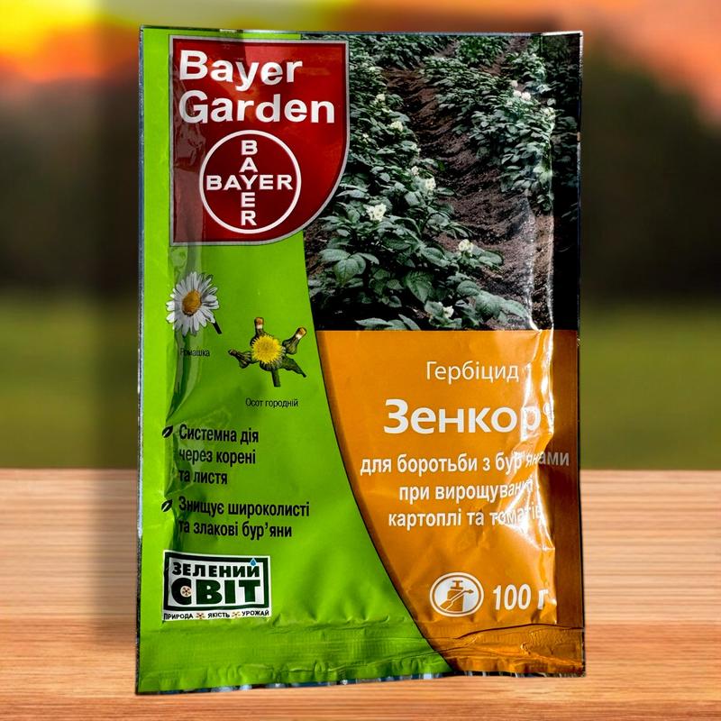 Гербицид выборочного действия Зенкор Широко известен гербицид , применяется для борьбы с двудольными и однопродольными сорняками на картофеле, томатах и сое. Благодаря активному веществу метрибузин препарат мгновенно проникает во все части растений, уничтожая как наземную часть, так и корневую систему сорняков, в то же время средство не накапливается в почве и не наносит вреда окружающей среде. Также препарат совместим со многими другими гербицидами, но рекомендуется дозы предварительно тестировать. Преимущества препарата Зенкор: - Захватывает широкий спектр сорняков - Возможность применять как для посадки, так и после отходов культур - Активно действует при низких и повышенных температурах - Не токсичен для пчел и пресмыкающихся в случае соблюдения дозировки Инструкция, способ применения, состав и норма расхода гербицида Зенкор 100 г Активное вещество: метрибузин 700 г/кг. Культура Объект обработки Норма расхода Особенности применения Картофель однолетние двухпродольные и злаковые сорняки 5-15 г/5 л воды, на 1 сотку опрыскивание почвы до появления выходов культуры Томаты рассадные однолетние двухпродольные и злаковые сорняки 11-14 г/5 л воды, на 1 сотку опрыскивание почвы для высадки рассады Томаты безрассадные однолетние двухпродольные и злаковые сорняки 7 г/5 л воды, на 1 сотку опрыскивание в фазе 2-4 листьев культуры Соя, люцерна однолетние двухпродольные и злаковые сорняки 0,7-1 кг/га опрыскивание почвы до появления выходов культуры