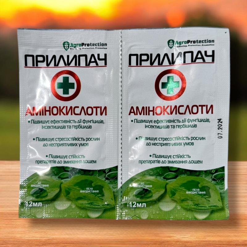 Прилипатель с аминокислотами AgroProtection Украина Поверхностно-активное вещество (ПАВ) предназначено для улучшения покрытия, содержания и проникновения рабочих растворов средств защиты растений и удобрений, что повышает их эффективность. Аминокислоты в составе прилипателя помогают растениям перенести стресс от обработки гербицидами, фунгицидами и инсектицидами, а также повышают устойчивость растений к неблагоприятным условиям окружающей среды. Улучшение смачивания надземных частей растений (особенно имеющих мощный восковый и волосяной покров) и усиление содержания рабочего раствора пестицидов - способствует более быстрому и более полному проникновению действующих веществ. Это ускоряет действие гербицидов, фунгицидов, инсектицидов и удобрений, обеспечивает их высокую эффективность и надежность. Особенно большое значение ПАВ имеет во время сухой или холодной погоды, когда замедляется рост сорняков, активность вредителей, патогенов и ухудшается проникновение действующих веществ препаратов. Прилипатель с аминокислотами обеспечивает стойкость к смыванию осадками, сильной росой и уменьшение вследствие испарения и разложения от фотодеградации. Преимущества ПАВ с аминокислотами Агро Протекшн - Прилипатель повышает эффективность действия фунгицидов, инсектицидов и гербицидов - Аминокислоты в составе повышают стрессоустойчивость растений к неблагоприятным условиям - Средство повышает устойчивость препаратов к смыванию дождем - Препарат продлевает период защитного действия пестицидов - Данное средство уменьшает жесткость и кислотность воды - Данный препарат улучшает проникновение в листовую поверхность растений - Прилипач не наносит вреда окружающей среде человека Инструкция, способ применения, состав, дозировка и норма расхода Прилипателя + аминокислоты 12 мл Действующее вещество: ПАВ на основе этоксилированных спиртов и полиэтиленоксида - 80-95%, аминокислоты. Прилипатель с аминокислотами применяется в концентрации 12 мл/10 л, 0.12% (120 мл на 100 воды) при норме расхода рабочей жидкости 2-3 л/сотку или 200-300 л/га (но не меньше чем 200 мл на 1 га). Для приготовления рабочего раствора необходимое количество пестицида залить в заполненный на 1/3 бак опрыскивателя. Через 5-15 минут перемешивания необходимо добавить прилипатель с аминокислотами и долить воды до полного объема бака.