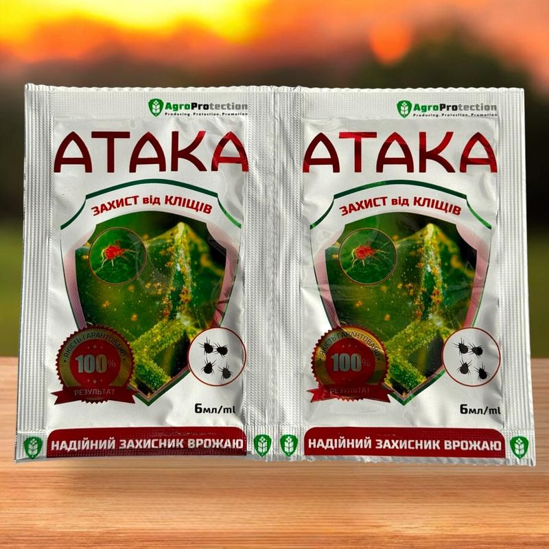 Препарат Атака защита от клещей Agro Protection Украина Инсектоакарицид контактного действия Атака клещ применяется для обработки овощных, плодово-ягодных и декоративных культур с целью защиты от комплекса насекомых-вредителей, а также всех видов растительноядных клещей. Препарат изготовлен на основе действующего вещества - спиродиклофена, эффективность которого обусловлена высоким токсичным действием на все стадии развития растительноядных клещей: яйца, личинки, имаго. Спиродиклофен ингибирует процессы линьки у клещей и некоторых видов других насекомых. У взрослых самок клещей препарат блокирует репродуктивные функции, что предотвращает дальнейшее размножение и повторное появление вредителей. Дополнительные ПАВ в составе инсектицида продлевают эффективность его действия и обеспечивают хорошую прилипаемость к поверхности растений. Препарат Атака клещ успешно используется в приусадебных хозяйствах для защиты яблони, груши, вишни, персика, абрикоса, смородины, малины, клубники, винограда, томатов, огурцов, перца, роз, самшита от трипса, щитовки, тли, белокрылки, а также растительноядных клещей (красного плодового, виноградного зудня, цикламенового, галлового, почкового, земляничного, паутинного и других). Преимущества инсектицида и акарицида Атака захист від кліщів Агро Протекшн - Препарат оказывает губительное действие на все стадии развития клещей: яйца, личинки и взрослых особей - Средство экономично благодаря низким нормам расхода - Инсектоакарицид обладает высокой скоростью подавления вредных организмов и предотвращает их повторное появление - Благодаря хорошей прилипаемости, препарат удерживается на листьях длительное время - Данное средство не фитотоксично при рекомендуемых нормах внесения Инструкция, способ применения, состав, дозировка и норма расхода инсектоакарицида Атака клещ 6 мл Действующее вещество: спиродиклофен 240 г/л, вспомогательные вещества, ПАВ. Культуры Норма расхода препарата Спектр действия Способ обработки Плодовые деревья 6 мл на 10 л воды на 6-8 деревьев Трипсы, щитовки, тля, белокрылка, растительноядные клещи (красный плодовый, виноградный зудень, цикламеновый, галловый, почковый, земляничный, паутинный). Опрыскивание в период вегетации при появлении вредителей Ягодные кустарники, декоративные культуры, цветы 6 мл на 5-6 л воды на 1 сотку Виноград Овощные культуры открытого и закрытого грунта Максимальная кратность обработок за сезон - 2. Срок ожидания до сбора урожая - 20 дней.