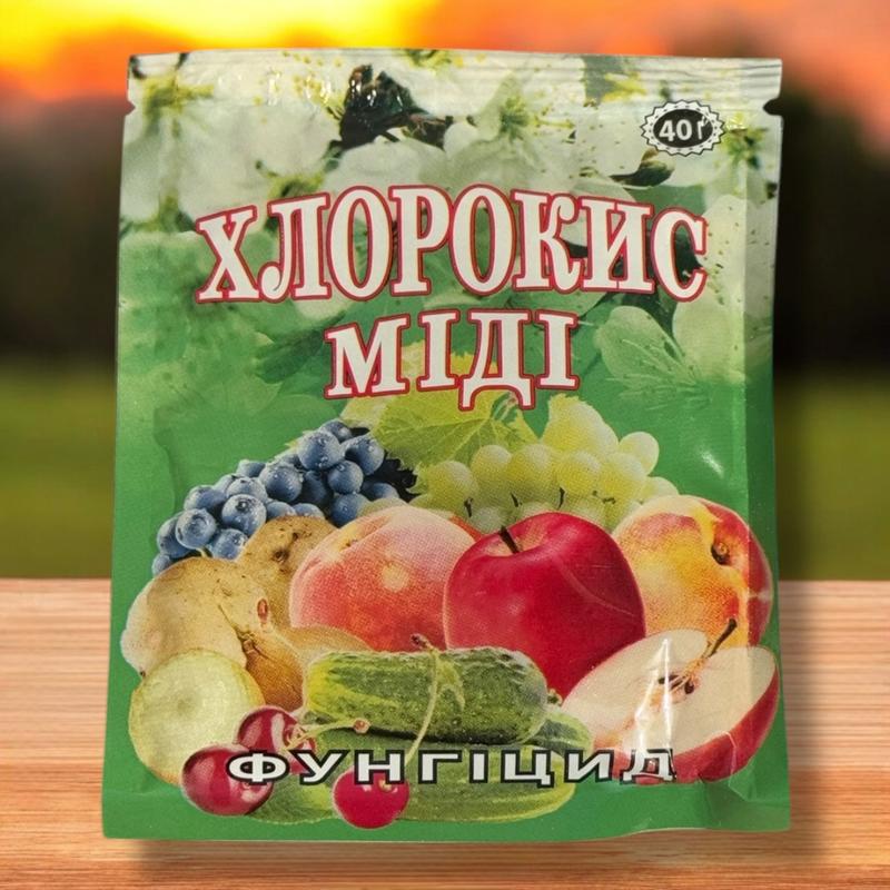 Фунгицид "Хлорокис Миди" 40 г порошок защита от болезней Фунгицид Хлорокис меди используется для лечения и профилактики овощных, плодово-ягодных и сельскохозяйственных культур от различных заболеваний. Состав препарата включает хлорокись меди, которая является аналогом бордоской жидкости и эффективно борется с грибковыми инфекциями и гнилями. После обработки препарат хорошо закрепляется на листьях, предотвращая проникновение патогенных спор грибов. Преимущества препарата: - Не обнаруживает фитотоксичности на возделываемых растениях. - Безопасный для культур и окружающей среды. - Совместим с другими фунгицидами на основе цимоксанила и манкоцеба. - Эффективно контролирует широкий спектр заболеваний растений. Инструкция по применению: - Дозировка: 40 г препарата на 10 л воды. - Использование: Обработку следует прекращать за 20 дней до сбора урожая. Культура Норма расхода (г/л) Способ и время обработки, особенности Болезни Количество обработок Срок ожидания сбора урожая Картофель 40 г /10 л Опрыскивание при вегетации 0.4% рабочим раствором Фитофтороз, макроспориоз, альтернариоз 5 20 Свекла 40 г /10 л Опрыскивание во время вегетации Церковопороз 3 20 Томаты 40 г/ 10 л Опрыскивание при вегетации 0.4% рабочим раствором Фитофтороз, макроспориоз, альтернариоз 4 20 Огурцы 40 г /10 л Опрыскивание во время вегетации Ложная мучнистая роса, антракноз, бактериоз 3 20 Лук 40 г /10 л Опрыскивание во время вегетации Ложная мучнистая роса 3 20 Хмель 80 г /10 л Опрыскивание во время вегетации Ложная мучнистая роса 3 20 Лен-долгунец 30 г /10 л Опрыскивание по лестнице, в фазе елки 0.4 раствором Антракноз, фузариоз 2 70 Яблоня, груша, айва 30-40 г /10 л Опрыскивание при вегетации 0.4% рабочим раствором Мучнистая роса, монилиоз 4 20 Слива, персик, абрикос, вишня, черешня 30-40 г /10 л Опрыскивание при вегетации 0.4% рабочим раствором Клястероспориоз, коккомикоз 4 20 Виноград 40 г /10 л Опрыскивание при вегетации 0.4% рабочим раствором Милдью, антракноз 6 30