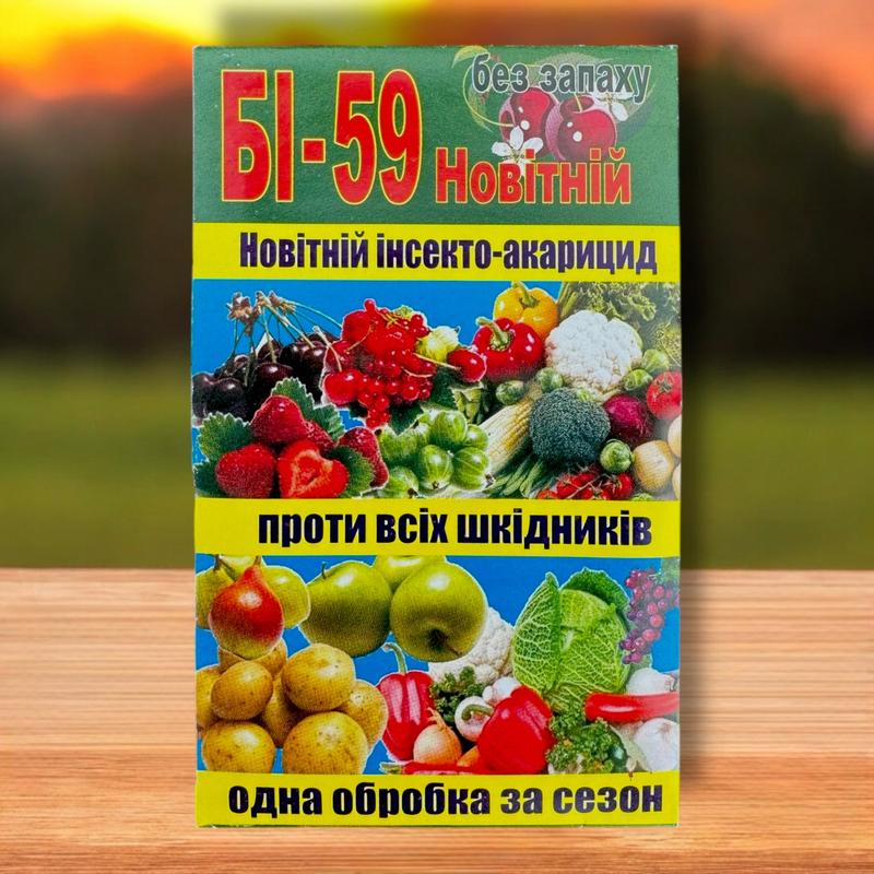 Инсекто-акарицид Би-59 (новейший, без запаха) Пиретроидный инсекто-акарицид, применяется на различных сельскохозяйственных культурах овощного, плодово-ягодного и декоративного типа с целью уничтожения наземных и почвенных насекомых в том числе и клещей. Препарат исключает возникновение резистентности у насекомых, уничтожает насекомых на всех стадиях их развития, при этом не наносит вреда культуре и окружающей среде человека. Преимущества БИ-59 - Не смывается осадками и поливом через 2 часа после обработки - Длительный период защитного действия до 30 дней - Совместим с многими фунгицидами - Достаточно одной обработки в сезон Би-59 инструкция, способ использования и норма расхода инсектицида на 20 л Действующее вещество: диметоат. Упаковку (5 г) разтворить в 20 л воды и обработать путем опрыскивания 2-4 сотки растений. Обработку рекомендуется проводить в тихую, безветренную погоду.